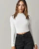 Detalle de modelo: Camiseta manga larga al cuerpo con cuello media polera.
