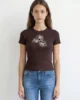 Detalle de modelo: Remera basica al cuerpo manga corta con cuello redondo con bordado en delantera