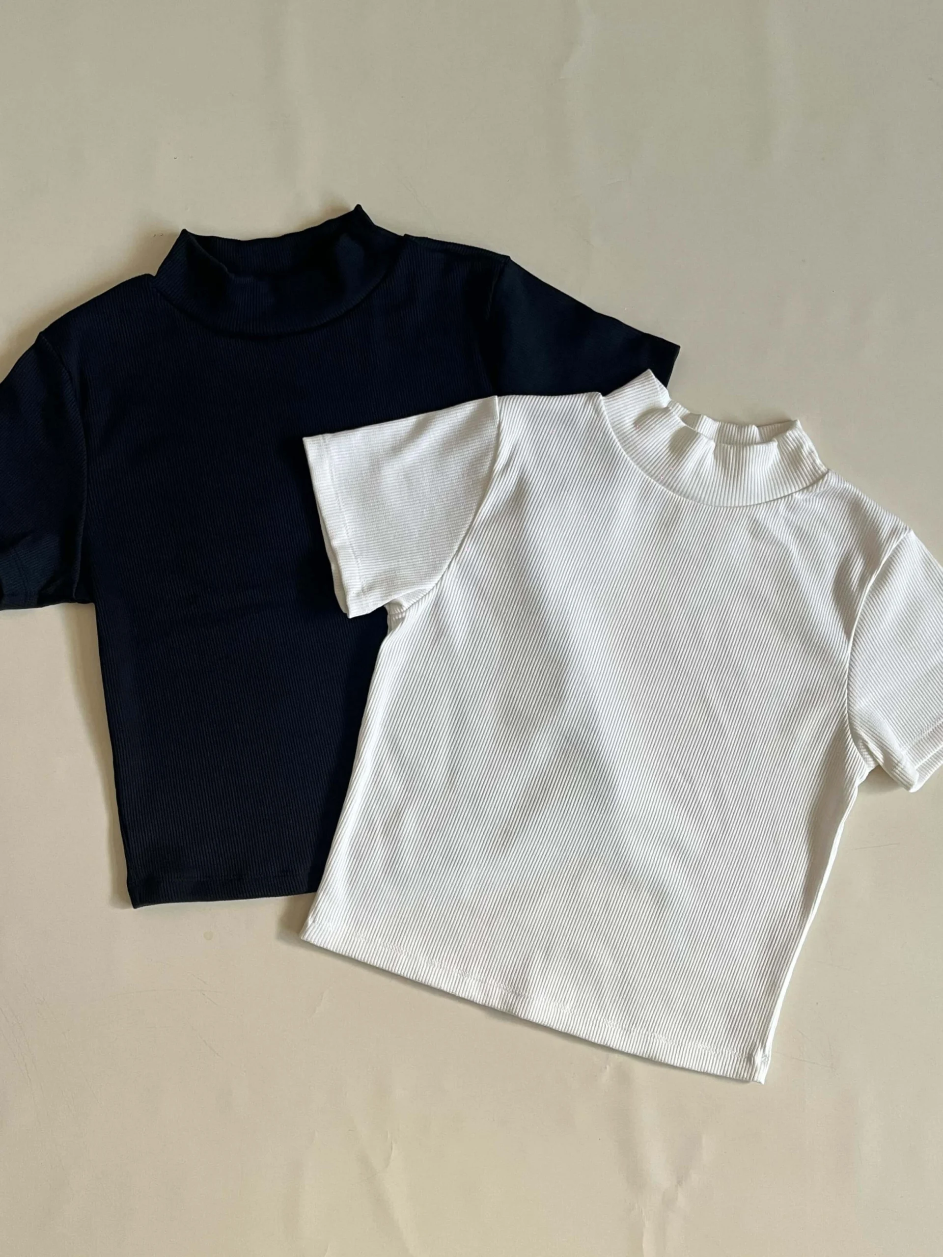Detalle de modelo: Remera manga corta al cuerpo con cuello media polera.