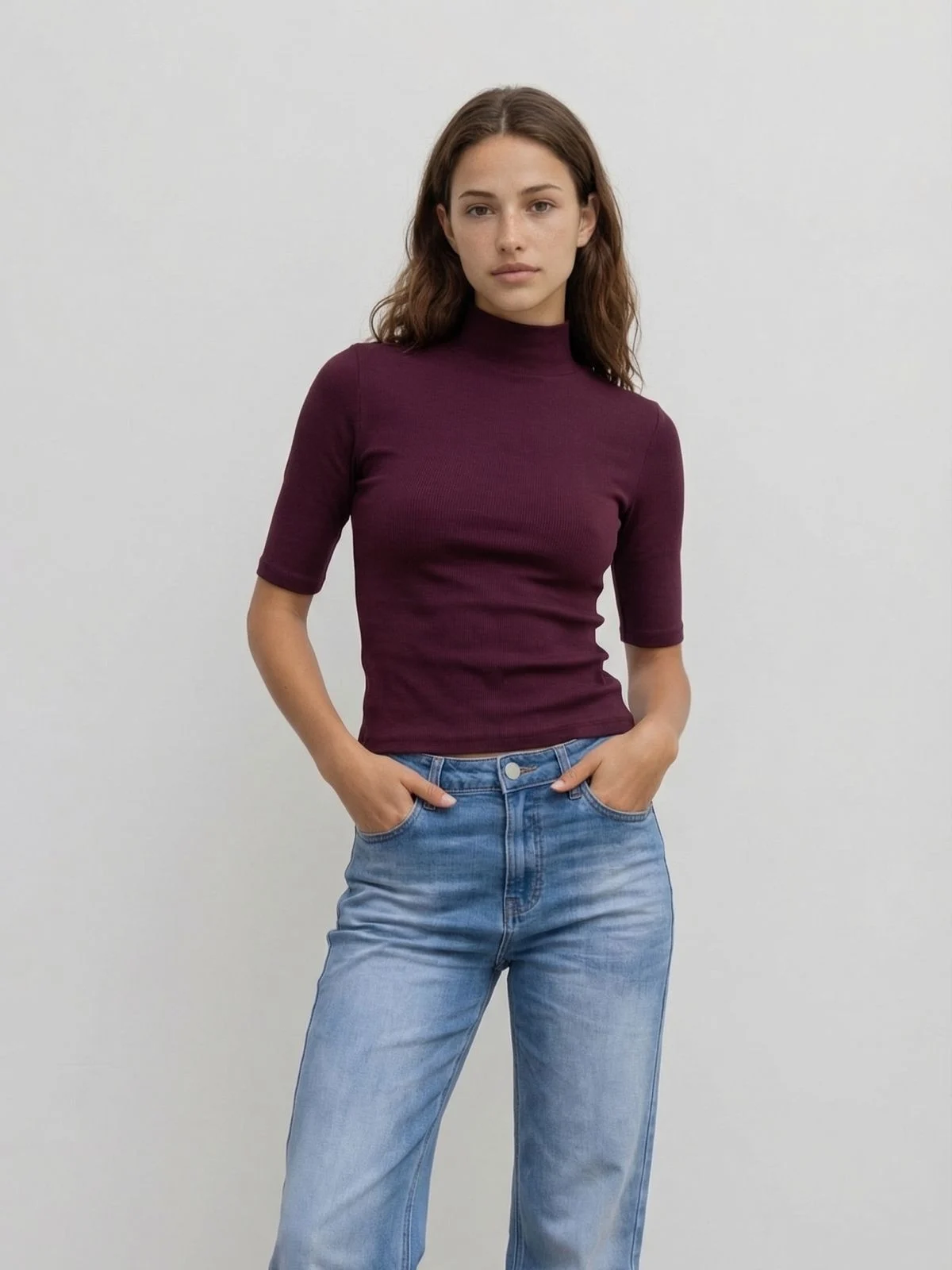 Remera “MARTINA” cuello polera/mangas al codo (Morley Premium)
